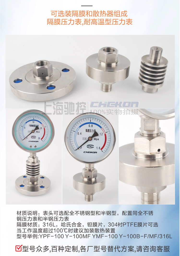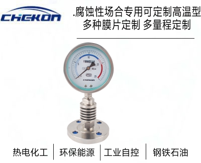 隔膜壓力表適用于測(cè)量強(qiáng)腐蝕、高溫、高粘度、易結(jié)晶、易凝固、有固體浮游物的介質(zhì)壓力以及要求避免測(cè)量介質(zhì)直接進(jìn)入通用型壓力儀表和防止沉淀物積聚且易清洗的場(chǎng)合。