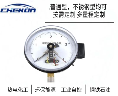 YXC系列磁助電接點(diǎn)壓力表廣泛應(yīng)用于石油、化工、冶金、電站等工業(yè)部門或機(jī)電設(shè)備配套中測量無爆炸危險的各種流體介質(zhì)的壓力。通常,以表經(jīng)與相應(yīng)的電氣器件(如繼電器及接觸器等)配套使用,即可對被測(控)壓力系統(tǒng)實(shí)現(xiàn)自動控制和發(fā)信(報警)的目的.