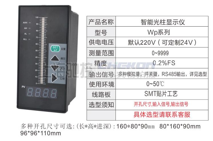 WP系列光柱顯示儀 萬(wàn)能信號(hào)輸入 4-20mA 上下限控制