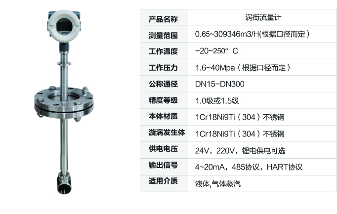 渦街流量計(jì)是根據(jù)卡門(Karman)渦街原理研究生產(chǎn)的,主要用于工業(yè)管道介質(zhì)流體的流量測量,如氣體、液體、蒸汽等多種介質(zhì).其特點(diǎn)是壓力損失小,量程范圍大,精度高,在測量工況體積流量時幾乎不受流體密度、壓力、溫度、粘度等參數(shù)的影響.無可動機(jī)械零件,因此可靠性高,維護(hù)量小.儀表參數(shù)能長期穩(wěn)定.渦街流量計(jì)采用壓電應(yīng)力式傳感器,可靠性高,可在-20℃~+250℃的工作溫度范圍內(nèi)工作.有模擬標(biāo)準(zhǔn)信號,也有數(shù)字脈沖信號輸出,容易與計(jì)算機(jī)等數(shù)字系統(tǒng)配套使用,是一種比較先進(jìn)、理想的測量儀器。