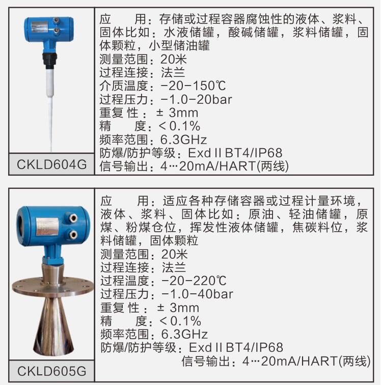 CKLD系列低頻雷達(dá)傳感器是先進(jìn)的雷達(dá)式液位/物位/料位測(cè)量?jī)x表,測(cè)量距離最大20米,可以用于存儲(chǔ)罐、中間緩沖罐或過(guò)程容器以及各種料倉(cāng)的物位測(cè)量,輸出4…20mA模擬信號(hào) 。