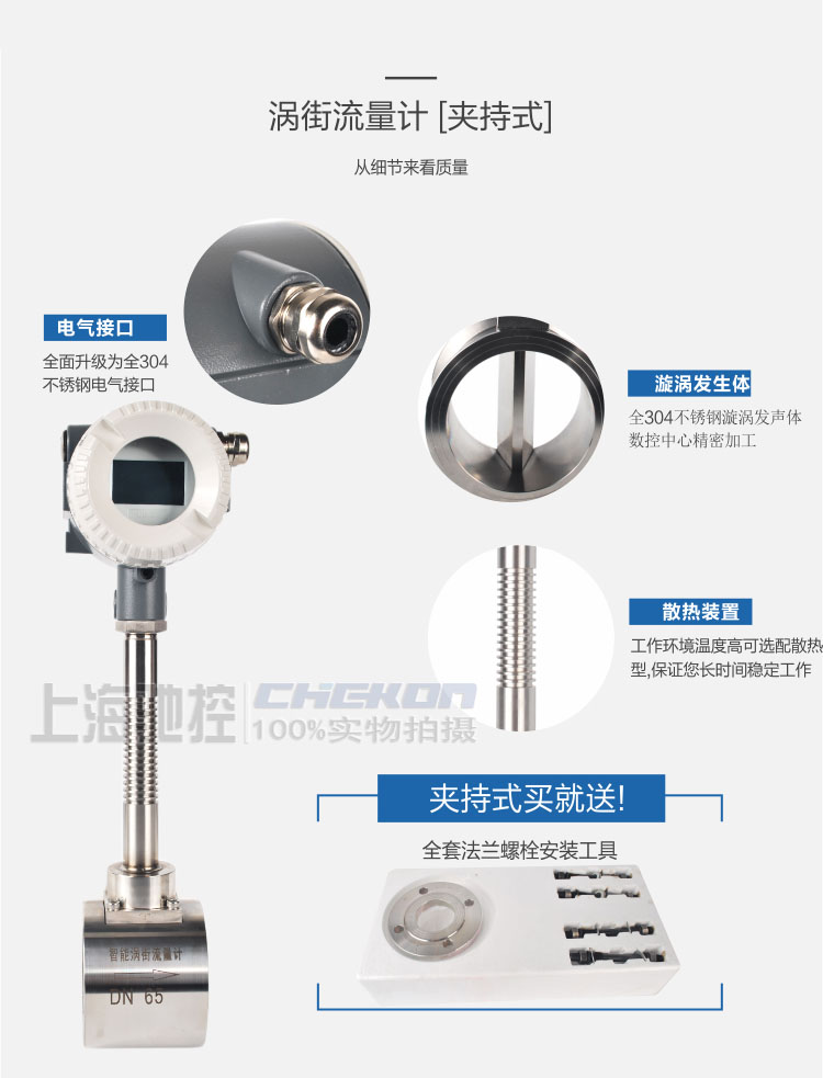 LUG渦街流量計 溫壓補償 夾持安裝 氣體液體均可測量