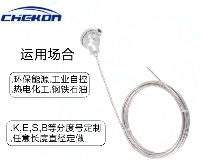 鎧裝熱電偶作為溫度測(cè)量傳感器,這與溫度變送器、調(diào)節(jié)器及顯示儀表等配套使用,組成過程控制系統(tǒng),用以直接測(cè)量或控制各種生產(chǎn)過程中0-1800℃范圍內(nèi)的流體、蒸汽和氣體介質(zhì)以及固體表面等溫度。鎧狀熱電偶具有能彎曲、耐高壓、熱響應(yīng)時(shí)間快和堅(jiān)固耐用等許多優(yōu)點(diǎn),它和工業(yè)用裝配式熱電偶一樣,作為測(cè)量溫度的傳感器,通常和顯示儀表、記錄儀表和電子調(diào)節(jié)器配套使用