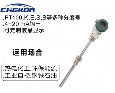該溫度變送器可直接安裝在熱電偶、熱電阻的接線盒內(nèi)與之形成一體化結(jié)構(gòu)。它作為新一代測溫儀表可廣泛應(yīng)用與冶金、石油、化工、電力、輕工、紡織、食品、國防以及科研等工業(yè)部門 。