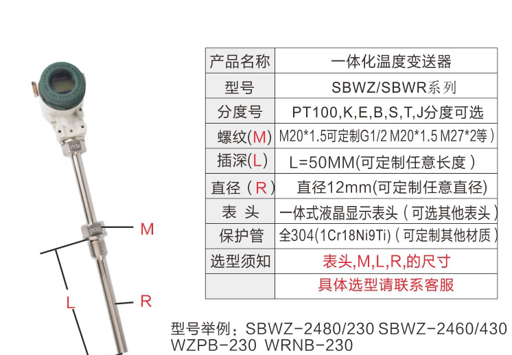 SBWZ/SBWR 一體式溫度變送器 熱電阻熱電偶 專業(yè)定制 4-20mA 就地顯示 PT100 K等多種分度號